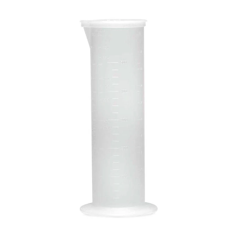 This graduated cylinder is marked with a wide variety of mixing ratios to allow precise mixing.