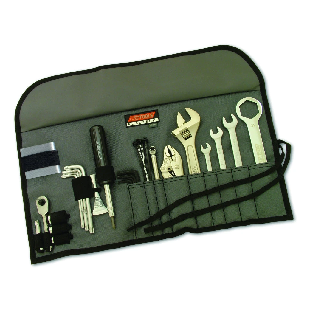 KTM’s have fastener sets as unique as their motorcycles, so we developed a tool kit specifically for the iconic brand. While extra attention was paid to Adventure and Duke models, all KTM’s are covered with focus on addressing both on and off road needs as well as basic service. Included are our standard tool kit items, but only the sizes you’ll need including combination wrenches, locking pliers, 6-in-1 screwdriver, hex and star wrenches, and much more. A special 27mm x 32mm combo wrench fits most rear and many front axles. And our way-cool ratchet is likely to be the envy of your riding buddies. Tools are pro-grade and lifetime guaranteed – you won’t find any substandard content here – and organized into a tough roll-up pouch.