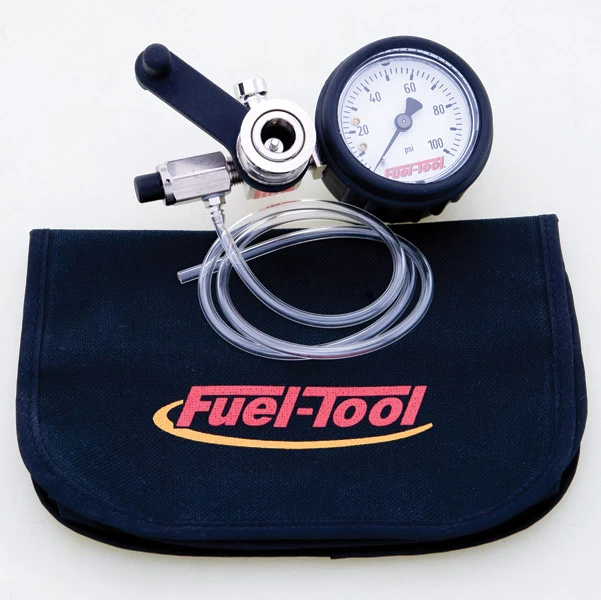 • Solid brass adapter and release valve, steel housing (100 psi) gauge, stainless steel springs, Viton O-rings, nylon storage pouch