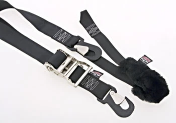 Maximum protection for the larger bikes is what the Big Daddy’s Deluxe Ratchet set is best used for. Integrated genuine sheepskin soft-tyes protect the paint and chrome surfaces. The secure hooks will not come unhooked when in use.