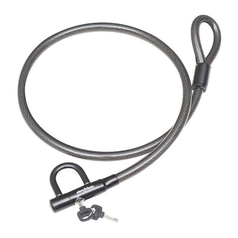 This heavy duty 20mm cable is great for securing just about anything. The large integrated shackle style lock is great for adding on chains and cables or can be locked around a brake rotor.