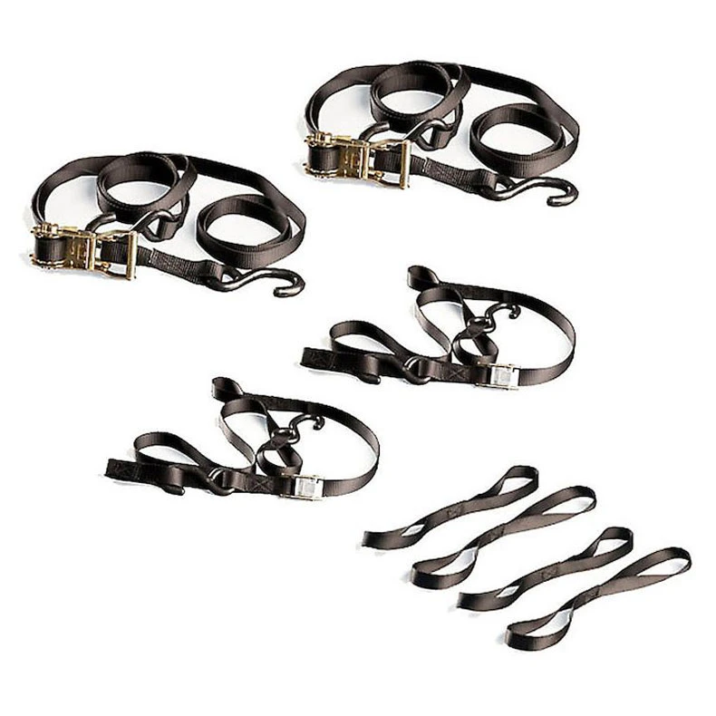 • Includes: 2 x Ratchet Tie-Downs, 2 x Cambuckle Tie-Downs and 4 x Soft Ties